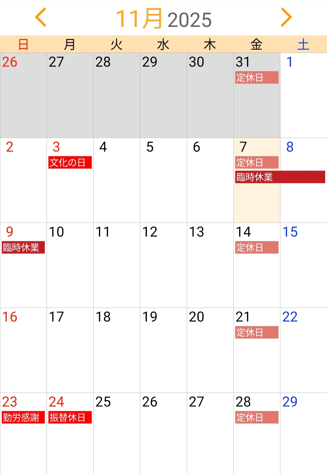 11月は定休日のほか、上記日程も休業させていただく予定です。
