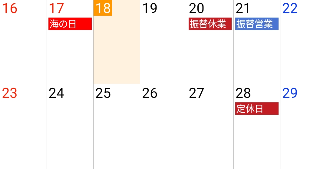 諸事情により、20日は21日の定休日と入れ替えて休業します。21日は振替で営業いたしますのでよろしくお願いいたします。