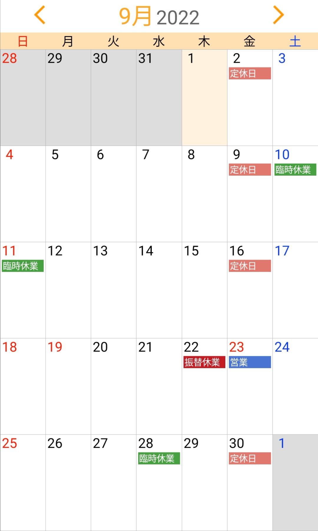 金曜定休日ですが23日祝日は営業しますので、22日木曜日に振替休業致します。